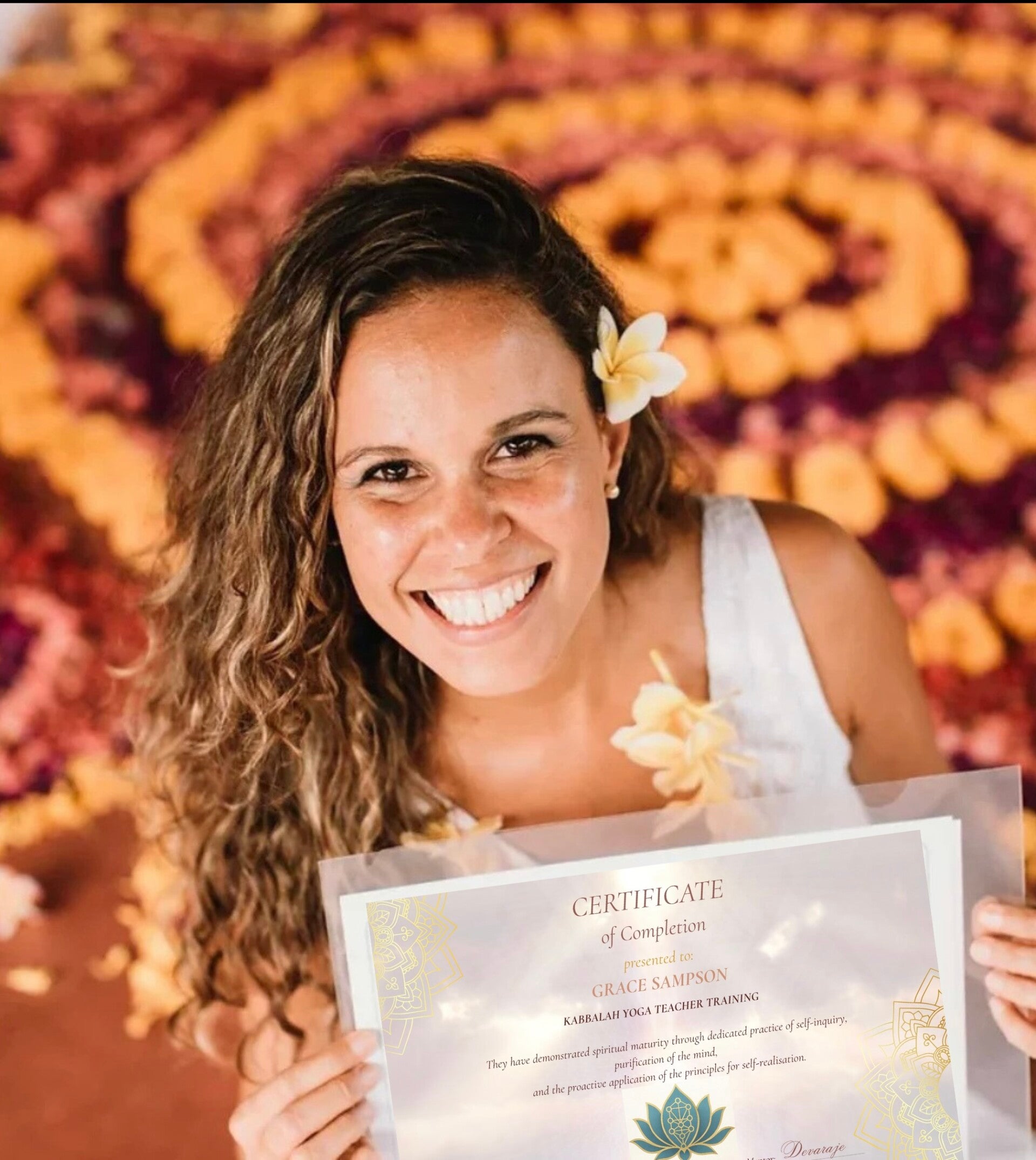 This certification acknowledges training in Kabbalistic principles, self-reflection, and meditative integration within yogic frameworks.